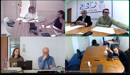 Os representantes do CESER BRETAGNE, CESER NOVA AQUITANIA, CES CANARIAS e CES GALICIA, baixo a presidencia do presidente do CES Galicia, Manuel Pérez, celebraron unha nova reunión de traballo para a elaboración do informe sobre emigración da Rede Transnacional Atlántica que ten que estar rematado antes de outubro do 2026.
